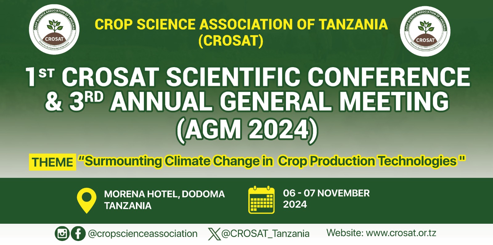 April 3, 2025The Crop Science Association of Tanzania (CROSAT) held its inaugural scientific conference on November 6th and 7th, 2024, at Morena Hotel in Dodoma. With the mission of enhancing the recognition and contribution of crop sciences to national development, CROSAT works closely with the scientific community, the government, non-state actors, and agricultural communities. The conference theme, “Surmounting Climate Changes in Crop Production Technologies,” underscored the urgent need to address climate change through innovative agricultural practices.